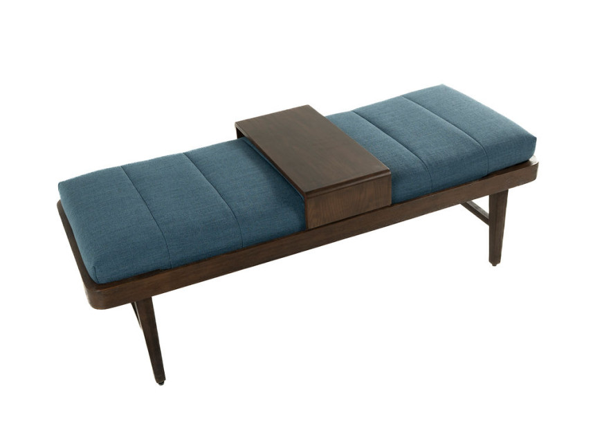 What truly sets the Vigo Ottoman apart is its integrated sliding wood table, which glides smoothly across the surface to create a convenient spot for drinks, books, or a laptop without sacrificing comfort. This clever detail allows the ottoman to shift effortlessly between a footrest, casual seating, and an occasional table, making it ideal for everyday living as well as entertaining. The contrast between the upholstered cushion and the warm wood table adds visual interest while reinforcing the piece’s functional design.